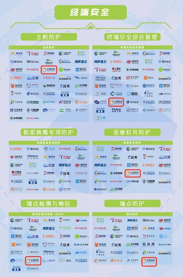 應用與產業(yè)安全),囊括102個細分領域?;鸾q安全此次入圍“終端安全”多項細分領域。